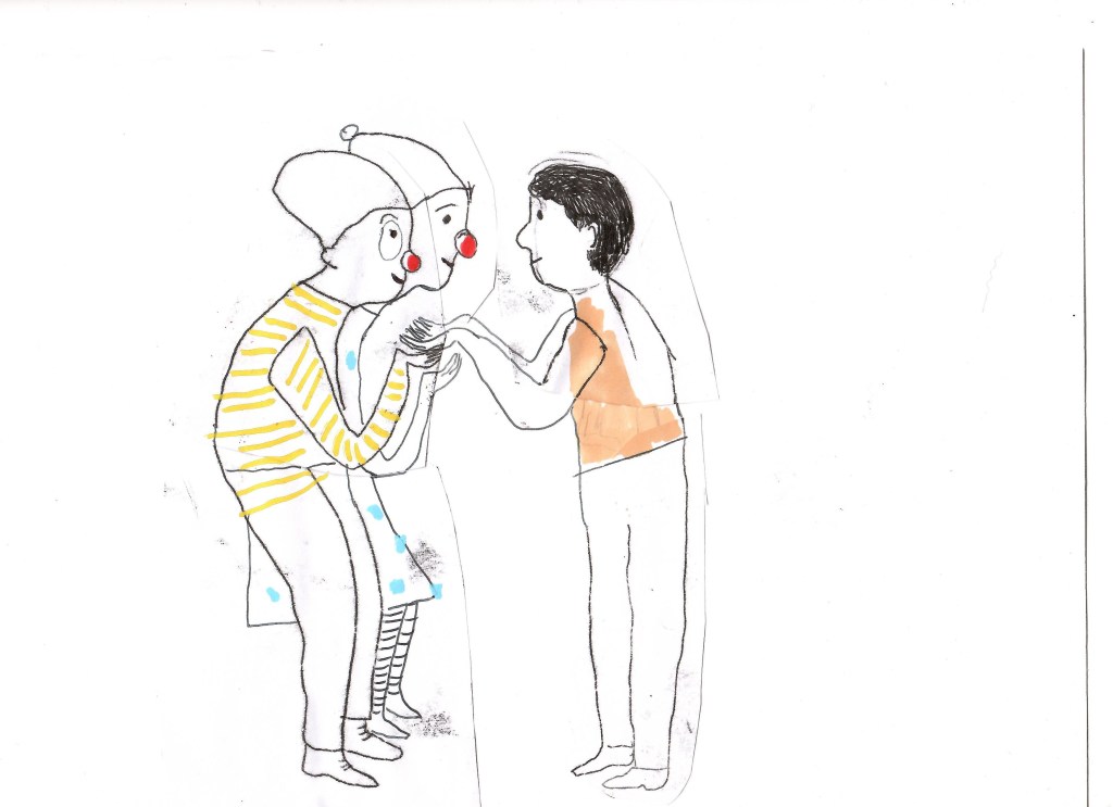 Dans l’exercice souvent proposé aux stagiaires pour approcher l’état particulier du clown, la personne est invitée à faire l’expérience de se laisser regarder par le public et de garder le contact-regard, sans avoir le projet de faire quoi que ce soit. Juste être là et contacter ce que ça lui fait. Vivre la sensation d’exister pleinement aux yeux des autres et accueillir l’émotion qui naît peut-être pour la laisser faire son chemin.