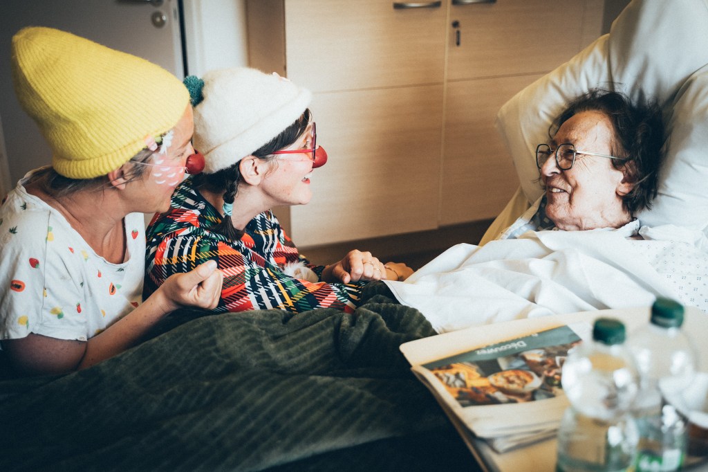 En Clown en soins relationnels, le regard s’offre à la personne visitée comme un coussin sur lequel se poser, un contenant dans lequel se laisser glisser, une invitation à se laisser accueillir exactement comme c’est dans l’instant de la rencontre.